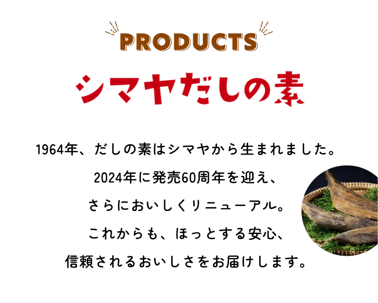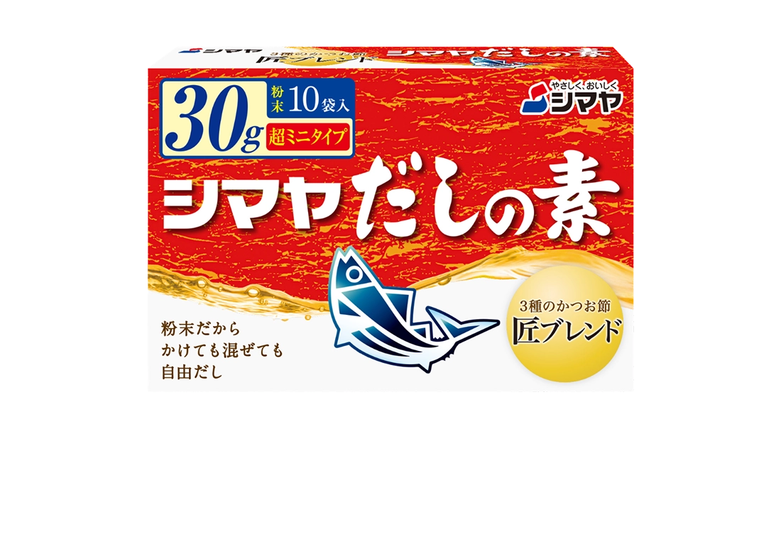 シマヤだしの素のおいしさはそのままに、特長の異なる3種のかつお節を組み合わせ、