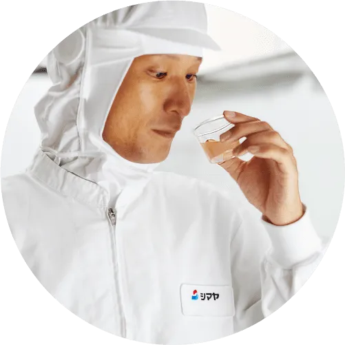 かつお節の香りを強める方法で燻し、香り高いかつお節に仕上げます。また香り立ちが良くなるよう、使用する薪を選んで燻しています。シマヤだしの素のほのかな燻した香りを演出するかつお節です。
